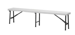 Use our white plastic bench on it’s own or add them to our 6′ plastic tables and make yourself some picnic tables! 72″ x 12″